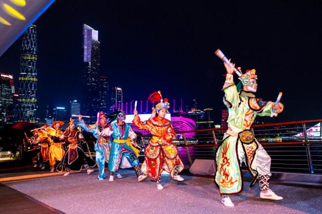 金秋十月,广州盛装迎接第十五届全国运动会倒计时10天的活动。10月29日晚,“广州之夜·比音勒芬时尚大秀”在海心桥拉开帷幕,这座全长198米的桥化作巨型T台,展示千年羊城的古韵与国际都市的生机。