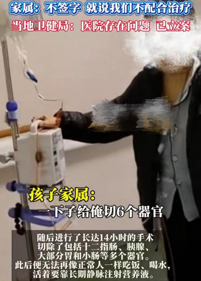 岳女士没多想就签了字,以为只是个小检查,没想到这是噩梦的开始。手术从当天中午12点40分持续到次日凌晨2点30分,长达14小时。术中医生多次匆忙走出手术室,先是说“大出血需开腹”,让家属签字;开腹后又说发现“低度恶性肿瘤”,要切除胰腺和十二指肠,再次催签;后续又以“肠管瘀血”“需血管移植”为由,让家属先后签了4次同意书。每次不签,医生就说“不配合治疗”,慌乱中他们只能听从。