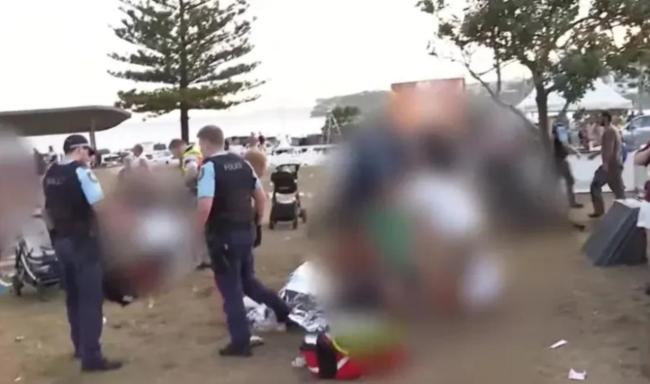 现场到处都是血迹,有人被同伴拖着跑,还有孩子在找爸爸妈妈。截至当晚,29名伤者中有不少人被送往医院抢救,警方防爆小组仍在处置可疑车辆内的简易爆炸装置,海滩周边被全面封锁,直升机持续在空中巡逻,敦促民众远离危险区域。