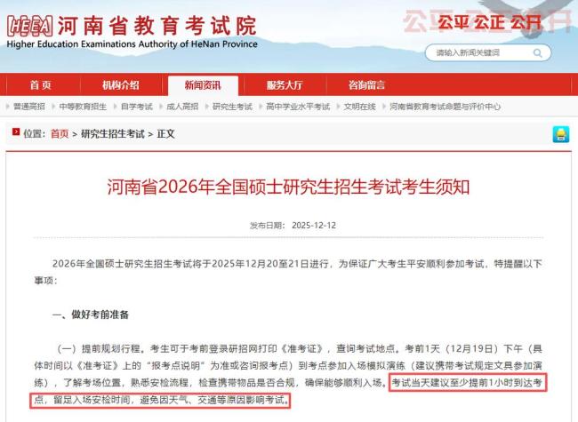 12月20日至21日,2026年硕士研究生初试即将举行,距离初试还有1天时间。考试期间需要注意以下事项: