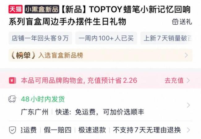 这一现象引发了消费者的质疑:盲盒产品普遍标注“不支持七天无理由退换”,是否属于霸王条款?记者在多个流量较大的电商平台搜索发现,服装、护肤品、化妆品等相对小众的盲盒品类大多支持七天无理由退换;而玩偶、手办类盲盒则普遍标注“不支持七天无理由退换”。以52TOYS淘宝旗舰店为例,该店铺直接售卖的毛绒公仔可享受七天无理由退换服务,但当毛绒公仔以盲盒形式售卖时,则明确标注不支持该服务。