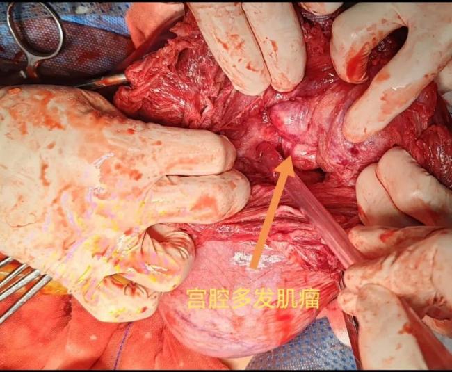 在不能阻断血流的情况下,手术团队将那枚巨大的融合性肌瘤仔细和谨慎地完整剔除。然而,肌瘤取出后,新的困难出现:子宫内仍有大量肌瘤,胎儿依然蜷缩在深处,无法娩出。最终,手术团队采取高难度的“内倒转术”,才将其取出。女婴顺利降生,母女平安。由于子宫已被肌瘤严重侵占,失去正常形态及正常组织,在与患者及家属沟通后,手术团队在分娩后为患者实施了子宫次全切除术,以彻底解除其病痛。