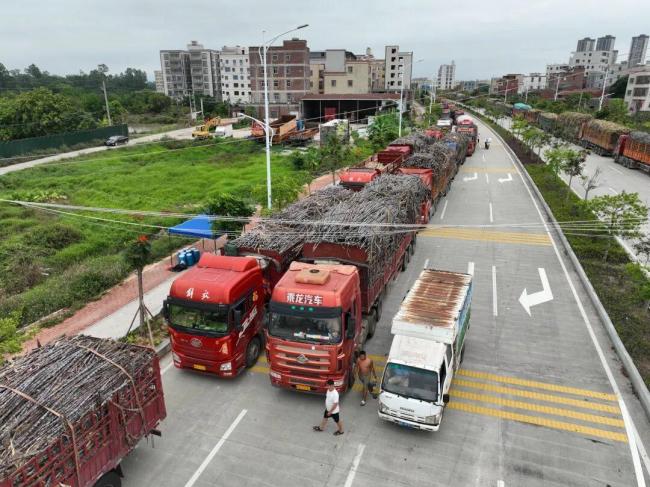 4月23日上午,记者在化州耀明糖业外看到,众多货车正在厂区外排队等候,一旦厂内放行,司机们立刻把车开进厂卸货。老板陈耀表示,糖厂已经连续10多天满负荷作业,目前仍在协调各地不断赶来的货车进厂。这些甘蔗大多来自广东省内,包括广州增城、南沙、清远、惠州等地,还有一些来自广西和福建。