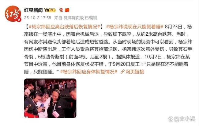- 杨宗纬说现在只能侧着睡 肋骨骨折的无奈选择